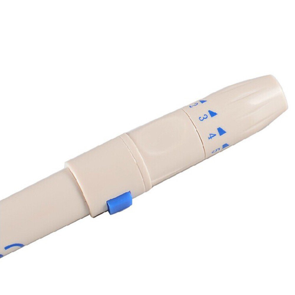 • قلم وخز يستخدم لاستخراج عينة صغيرة من الدم لقياس نسبة السكر في الدم.