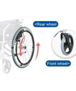 تم تصميم هذا الكرسي المتحرك بشكل مريح – يوجد جيب كبير في الجزء الخلفي من الكرسي المتحرك لمجموعتك. المكابح اليدوية على العجلة الكبيرة سهلة الاستخدام، وإذا لم تكن راضيًا عن إحكام الفرامل أو سرعتها، يمكنك ضبط نظام الفرامل.