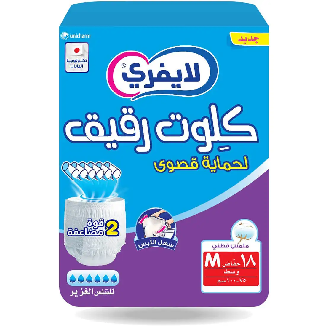 حفاض لايفري كيلوت رقيق لحماية قصوى. يمتص حتى 6 كاسات مما يحسن من نوعية حياة الأشخاص الذين يعانون من سلس البول الغزير.